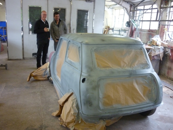 It made an interesting contrast to the Farina Grey Austin basket case, recently for sale on the 1959 register, that is the third-oldest surviving Austin (is that right?) that three friends of mine have bought. Last Monday one of those friends and I went to visit it in its hideaway in my new toy. It was quite surreal.