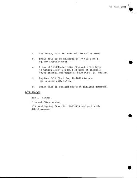 59 door showing the flap broken off and hole enlarged so water could pass freely, as in service memorandum December 1959.
