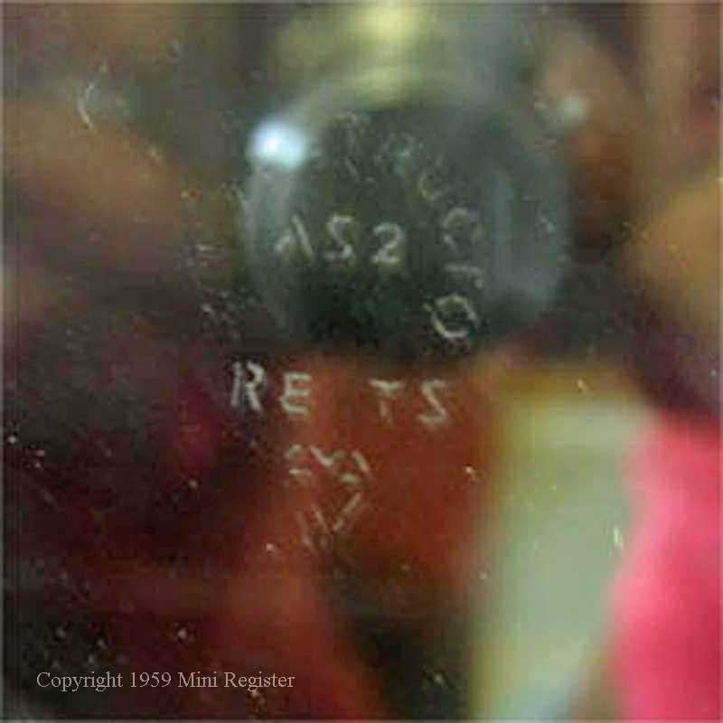 The image on the right represents the Indestructo glass which is coded the 2nd quarter 1960.  Taken from John Parnell’s “Original Mini Cooper and Cooper S”
