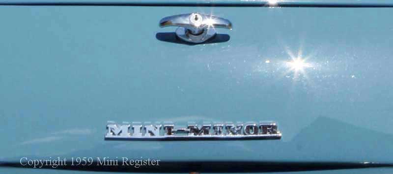 Correct boot script for a UK Austin Seven. Correct boot badge for a UK Morris Mini-Minor.
