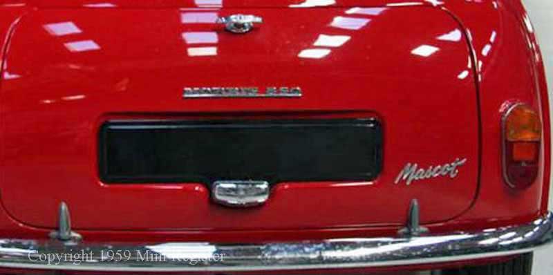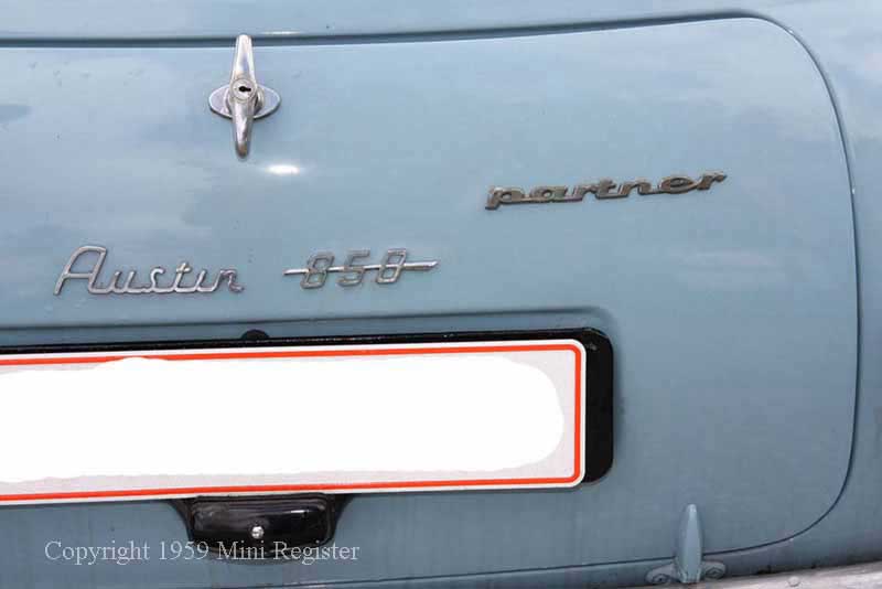 Danish specification 1959 Austin 850’s were called Partner from the start of importation in July 1959, but dropped from 1964 and badged accordingly, with drilled holes for fixing of the badges on boot. Danish specification Morris 850’s were called a Mascot from August 60 and on to the end of import in 1981, and badged accordingly. 1959 cars shouldn’t have the Mascot badge.